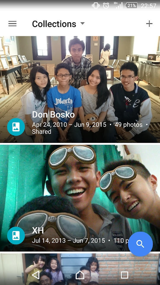 A slide to the left brings you the ‘collection’ interface. In this section, you are served with the creation you have made. There are some creation you can make : an album, a collage, an animation, a movie, or a story. This is where things get a little unorganized for me : you can’t move a collage, an animation, or a movie to an album or a story. I think those 3 creations shouldn’t be a part of Google Photos but be a part of some photo editing app.
